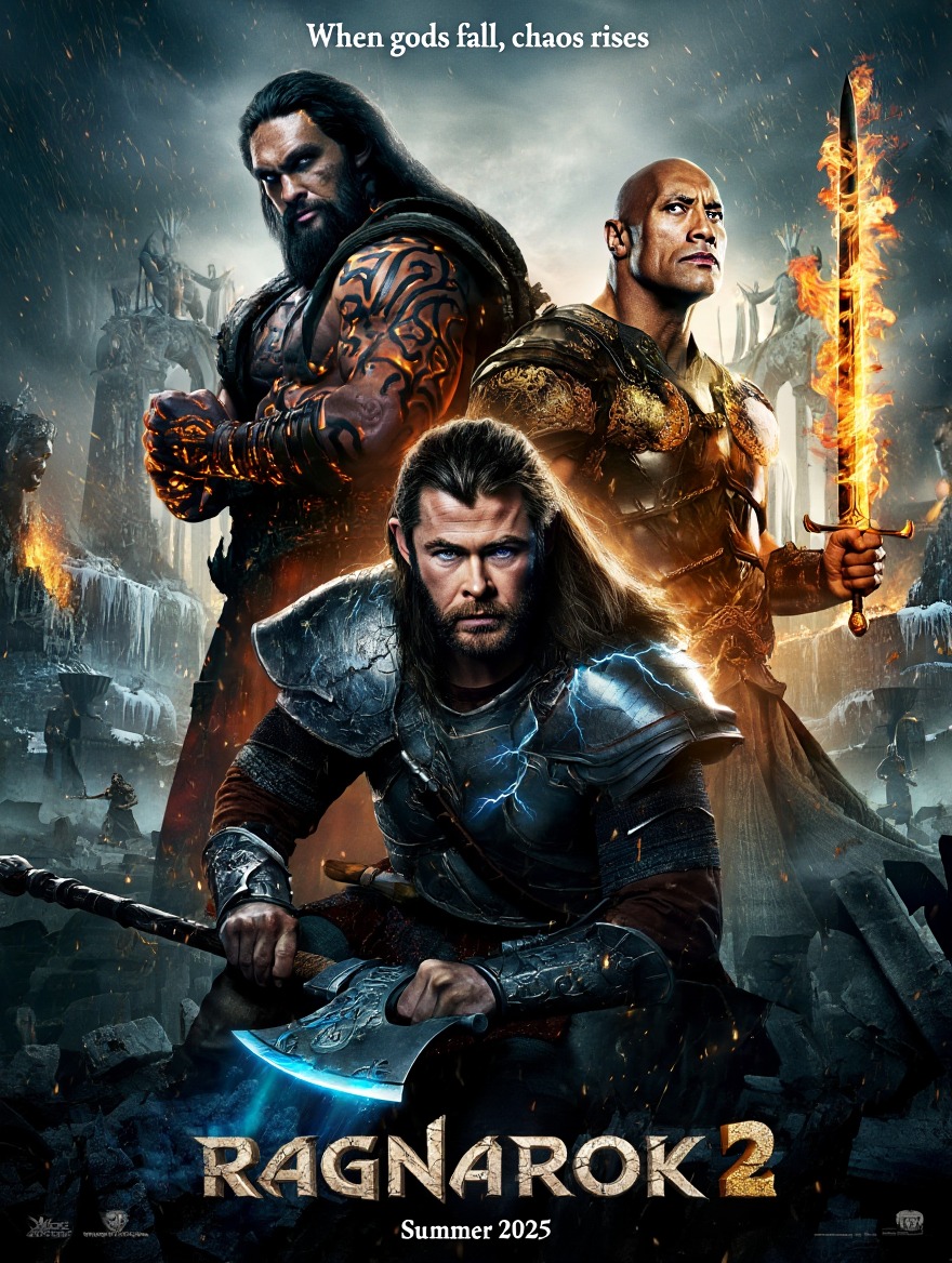 In Ragnarok 2, the heavens tremble as the final war of the gods erupts across realms. The Nine Worlds are in ruin, and the balance of power is shattered. Thor (Chris Hemsworth), scarred but unbroken after the first Ragnarok, returns to Asgard—only to find it consumed by shadow and ruled by a dark pantheon risen from the void.